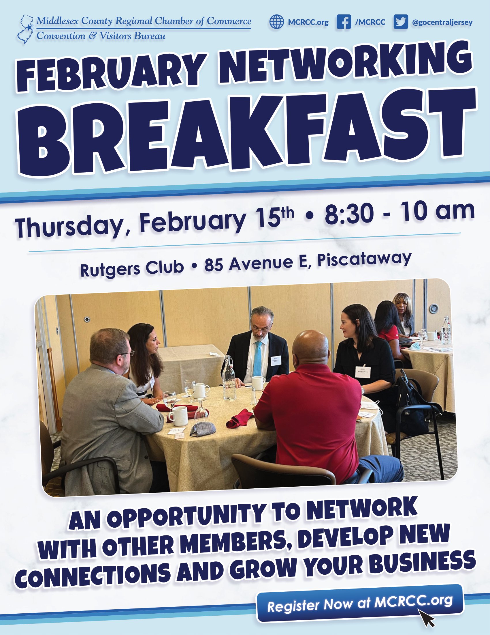 The Heldrich Hotel 10 Livingston Ave, New Brunswick, NJ, United StatesJoin the Middlesex County Regional Chamber of Commerce for our February Networking Breakfast on Thursday, February 16th at The Heldrich Hotel, 10 Livingston Ave in New Brunswick. The MCRCC Networking Breakfast is designed to provide Members and their Guests (See Below For Details) with the Opportunity to Network with other Members, Develop New Connections and […]